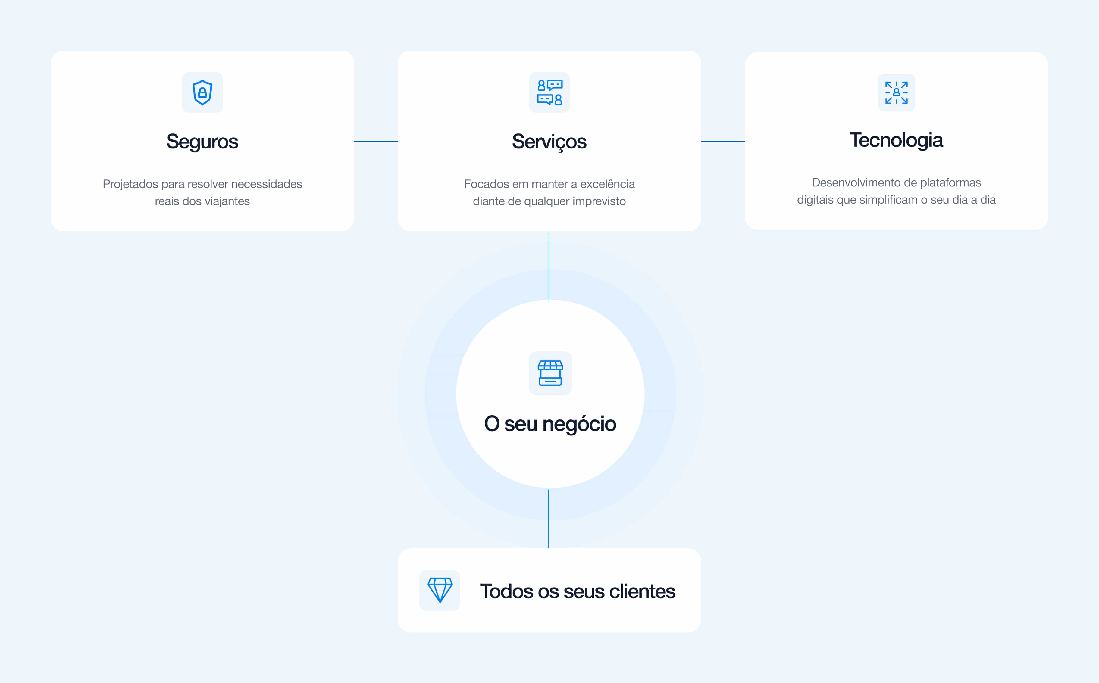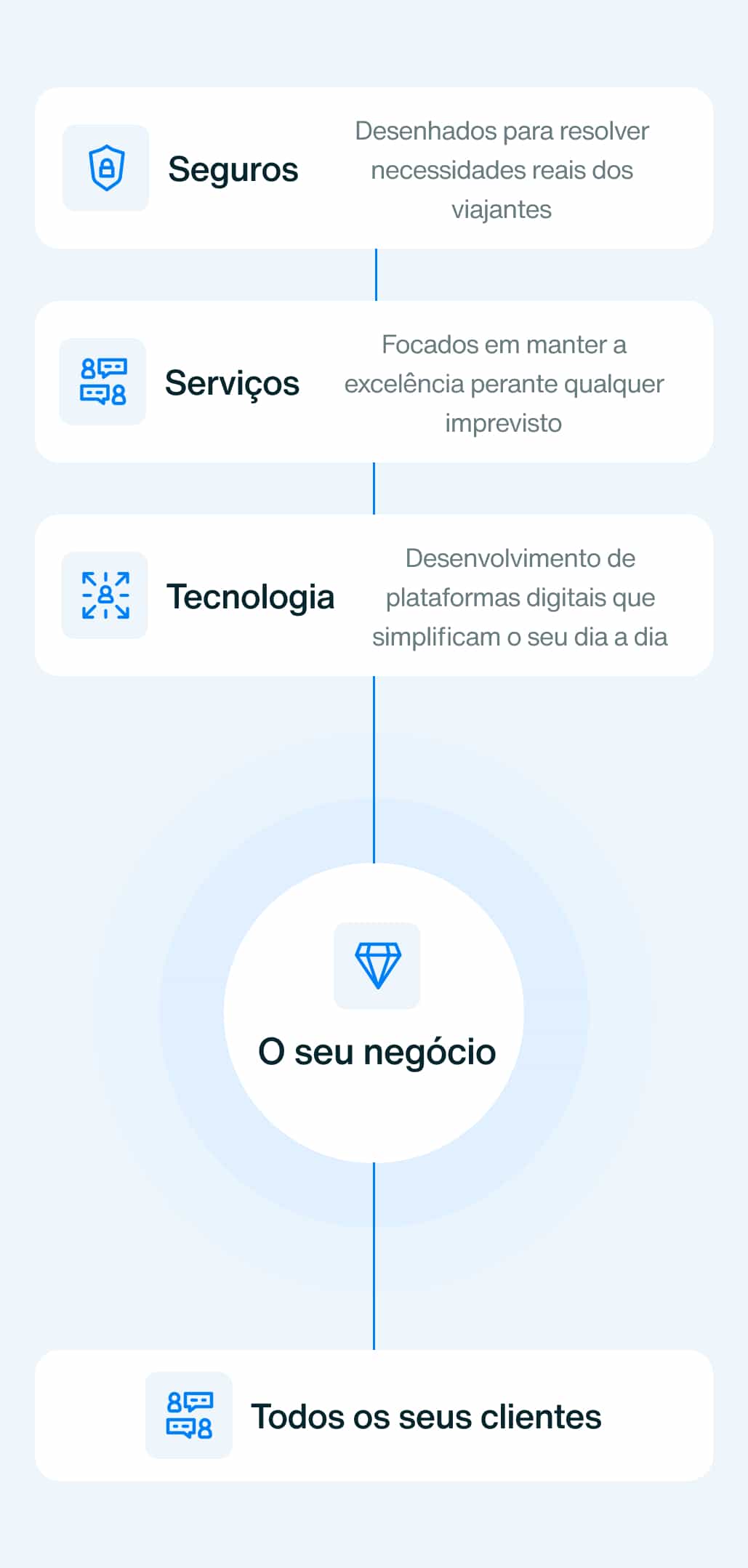 Oferecemos uma solução completa através dos nossos seguros, serviços e tecnologia, concebidos por especialistas em turismo com mais de 30 anos de experiência.